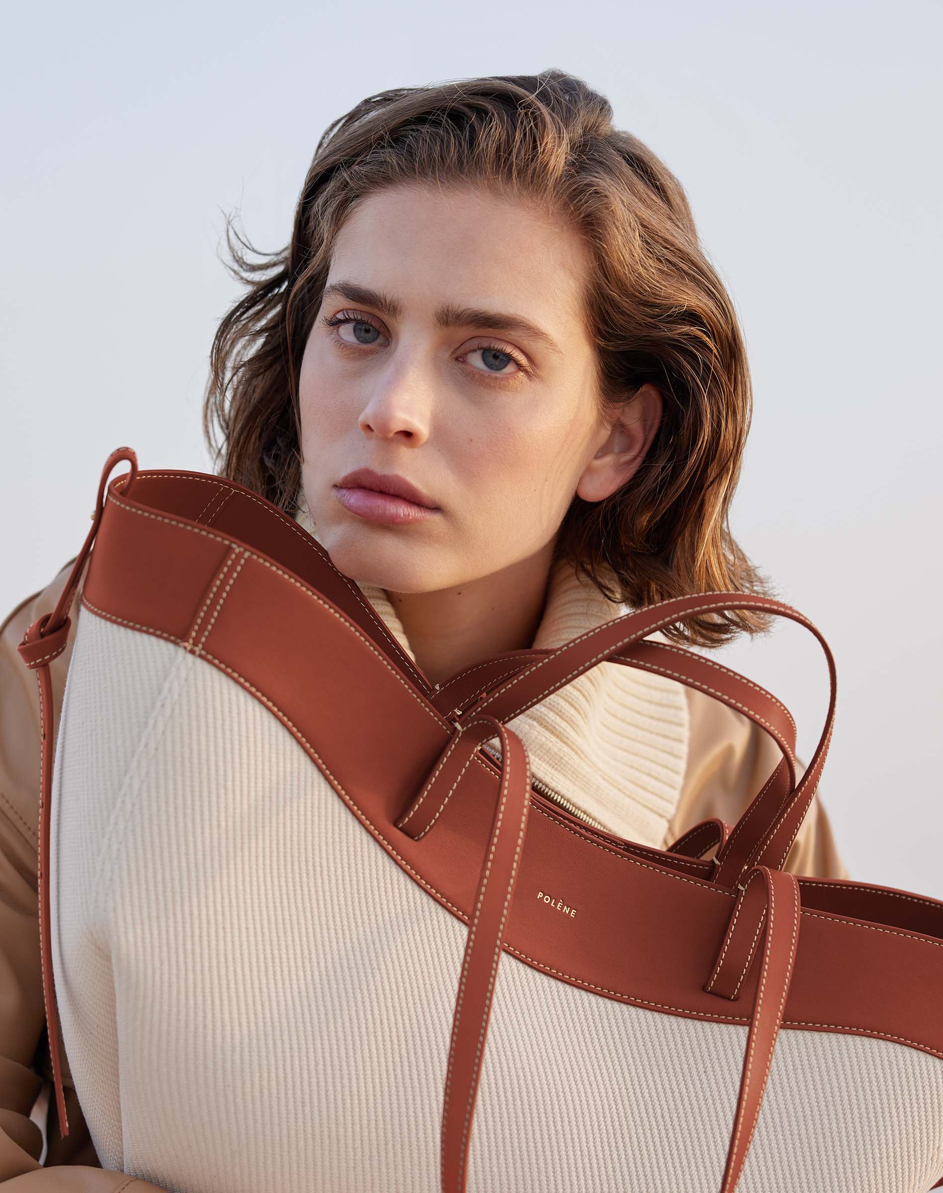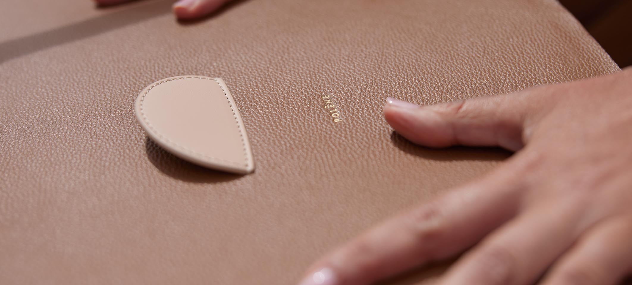 The beauty of leather is vital to enhancing the creative vision and artisan craftsmanship. It is found in the “hand” that determines the feel of the leather, its malleability, its hold, and the perfection of its surface. Polène uses only ISO 9001- certified leathers, the quality of which is checked multiple times by the tanneries and the brand’s craftsmen before the patterns are cut and again at the end of the manufacturing process.
